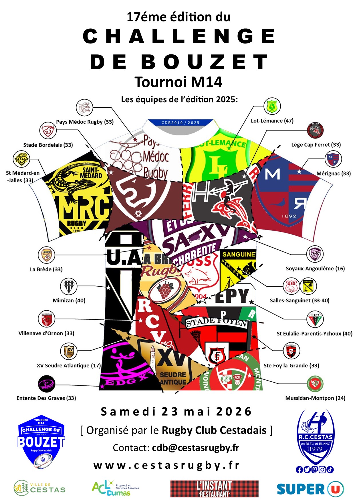 | Contact: cdb@cestasrugby.fr Télécharger la fiche d'engagement |